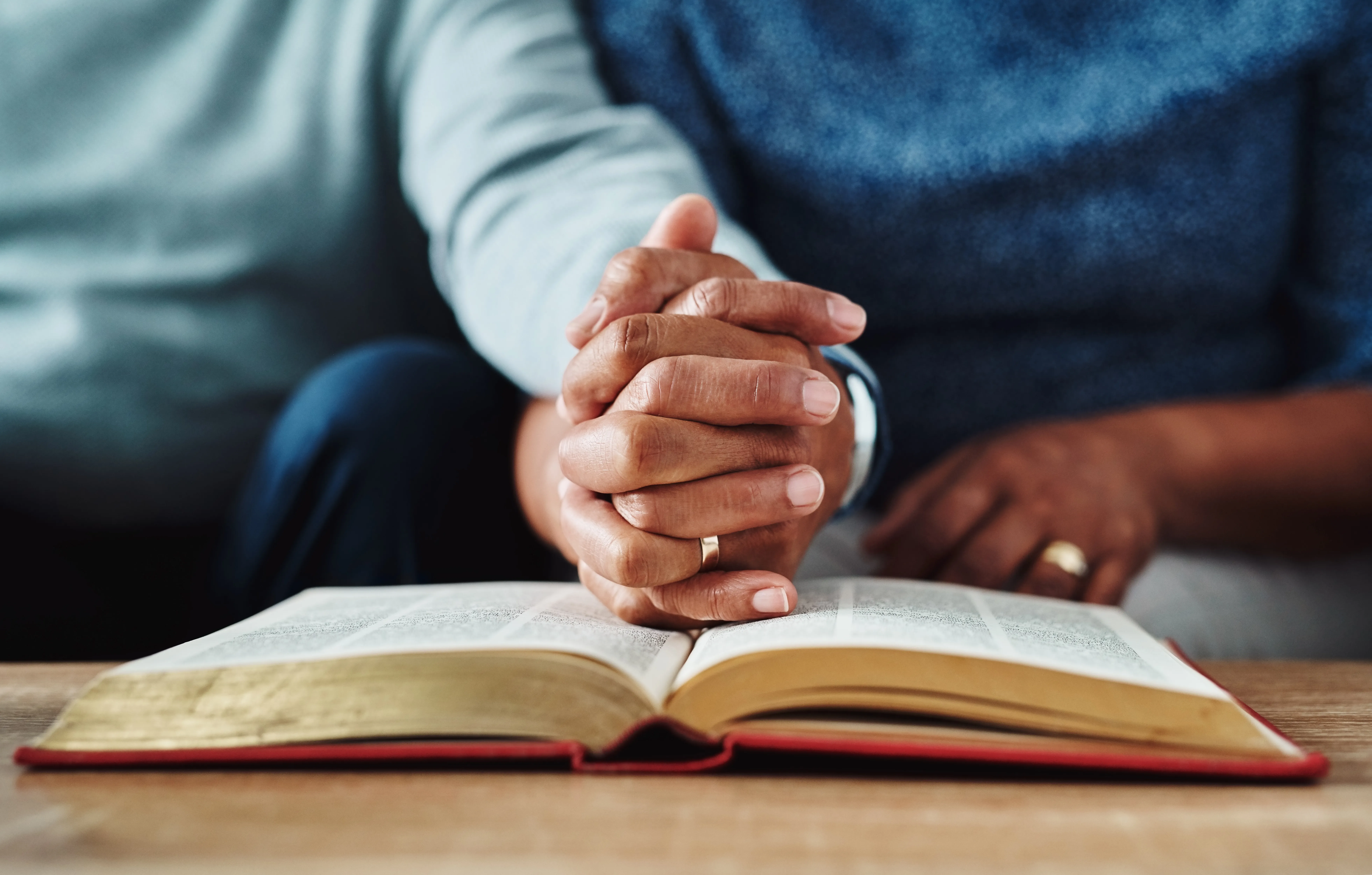 A group holding hands and praying together